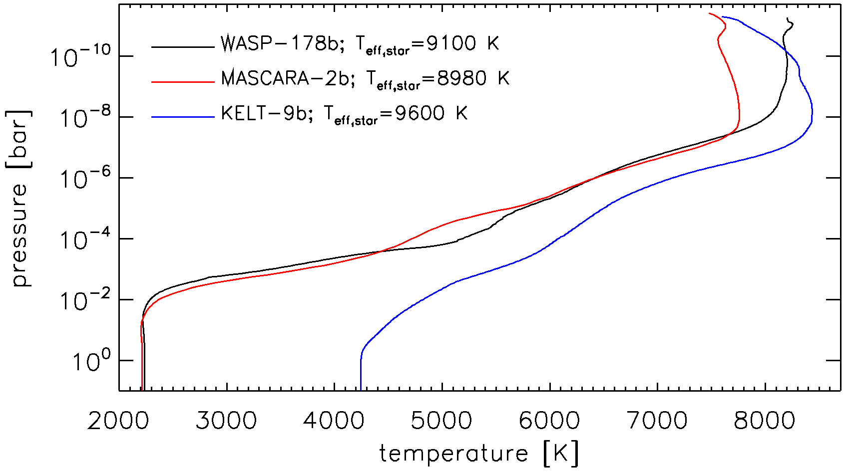 Our team participated in the analysis of an ultra-hot Jupiter WASP-178b, led by Dr. Luca Fossati from Graz (Austria), and collaborators. This is the third study by the research team on similar hot planets, where direct models accounting for Non-Local Thermodynamic Equilibrium (NLTE) are used to constrain the planet’s atmospheric temperature, abundances, and mass loss rate. A detailed analysis of the atmospheric thermal balance shows that accounting for NLTE effects significantly increases the middle and upper atmospheric temperature. This is due to a combination of increased heating due to the overpopulation of long-lived FeII levels, and decreased cooling due to the underpopulation of MgI and MgII levels that dominate radiative cooling. A strong absorption due to the overpopulation of those FeII levels heats the atmospheric temperature of the planet to an enormous 8200K in its extreme value in the upper part of the atmosphere. Despite the hot upper atmosphere and the rather low planetary mass, the lack of strong stellar XUV emission implies that the atmosphere remains mostly hydrostatic. The NLTE model predicted the planetary mass-loss rate of about 4.5×10¹⁰ g/s, which is comparable to that of classical hot Jupiters.